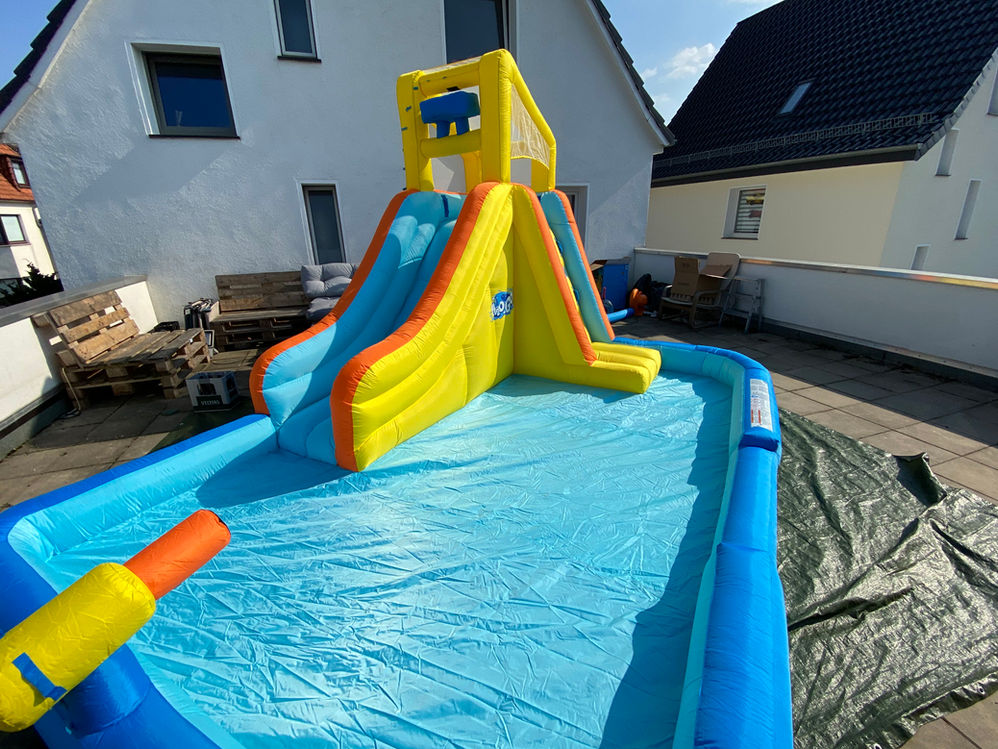 •  Wasserpark besteht aus einer Rutsche,  einer Kletterwand und einem Poolbereich zum Planschen